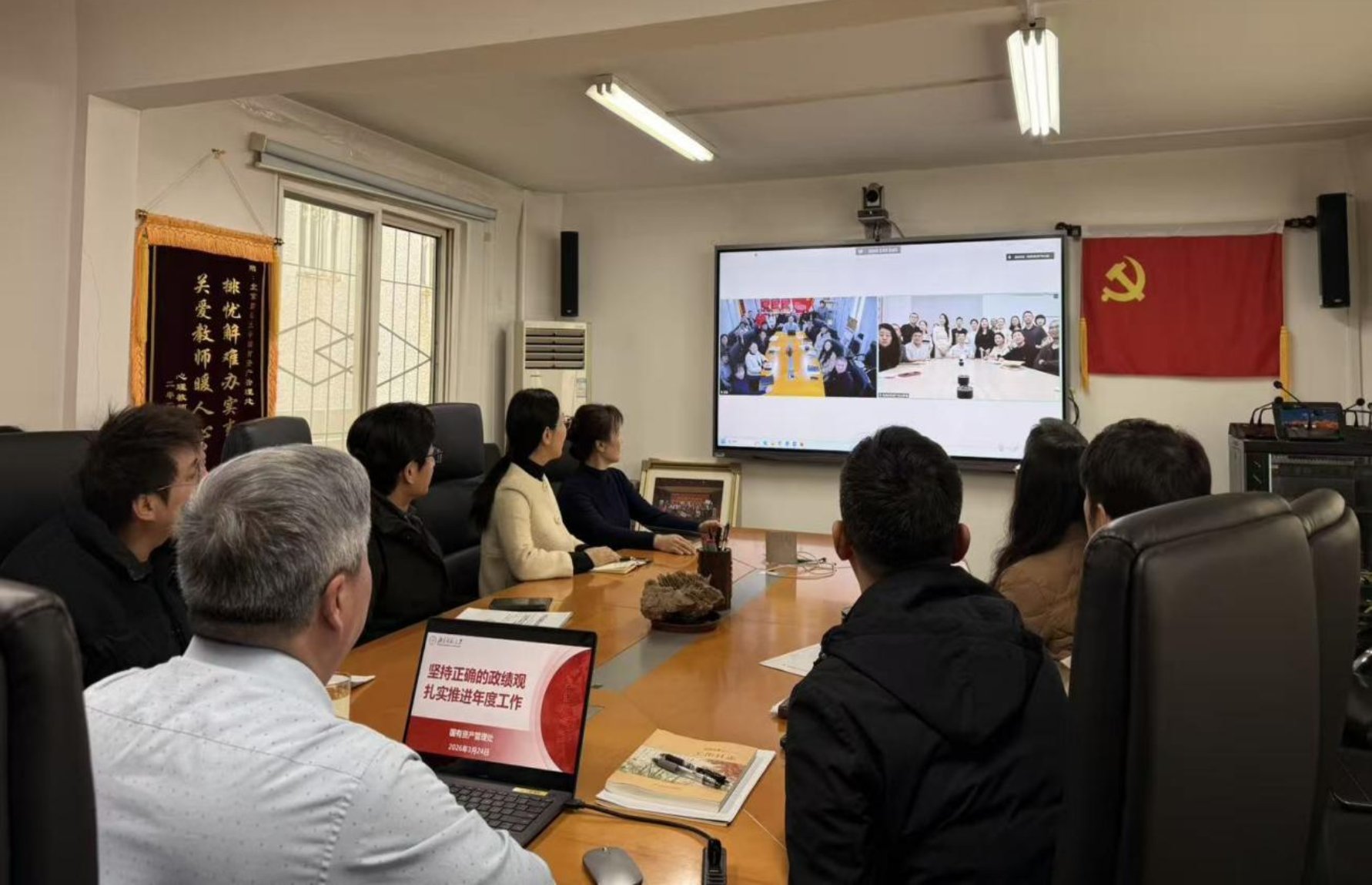 3月24日上午,国有资产管理处召开专题学习会暨2026年度工作部署会,深入开展树立和践行正确政绩观学习教育,全面贯彻落实学校年度工作部署,并对2026年度部门重点工作进行统筹安排。会议由国资处处长刘建武主持,国有资产管理处、珠海校区资产办公室全体教职工参加会议。
